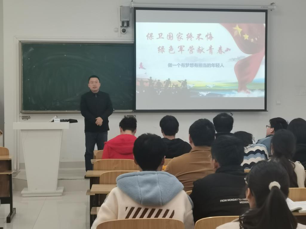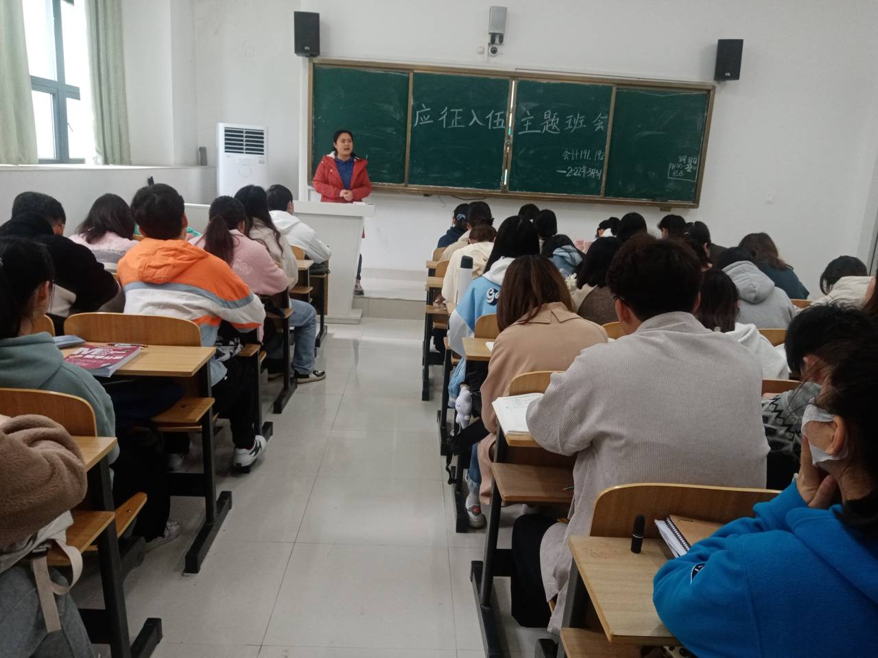 应征入伍宣传教育主题班会,充分展现了学院高度重视大学生征兵工作,有效激发了学院学子投身军营、建功立业的热情和信心,为学院完成征兵工作打下坚实基础。(特约通讯员:王天云 审核:耿广汉)