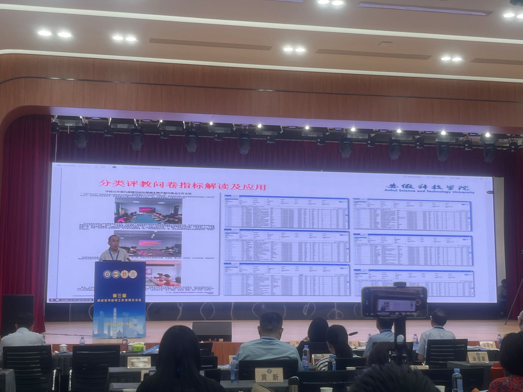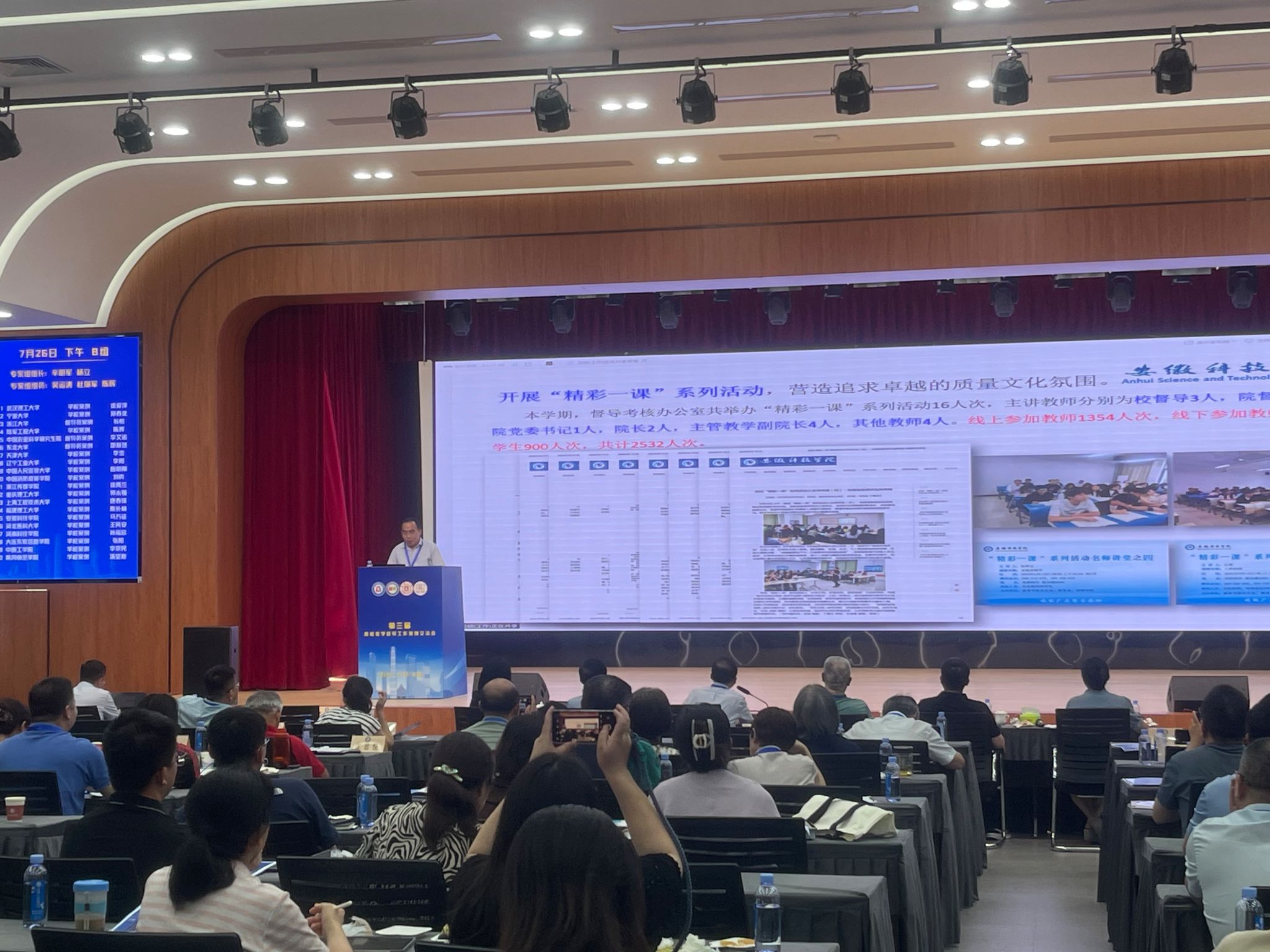 我校督导考核办公室马万征在会上作案例分享报告,督导工作案例得到了与会专家的肯定。报告主要从四个方面展示:(1)督导工作理念:督导定位、顶层设计、组织架构、政策制度、职能职责、如何筑牢质量底线等。(2)督导工作方式方法:质量标准、指标体系等.(3)督导工作成效:反馈与持续改进机制是什么,是否闭环管理,效果如何,有无数据支撑督导评价反馈使教学质量得到了提升、师生从中受益等。(4)问题与挑战:学校督导工作存在的问题,质量保障体系未来的发展方向等。