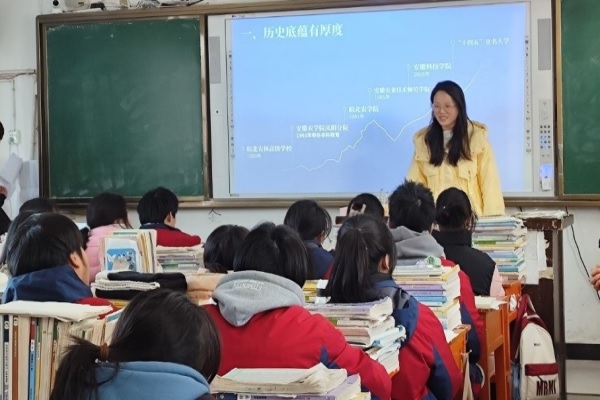动物医学211班卞安萍、动植物检疫222班崔温鑫、动物医学233班杨靖宇、动物科学221班张加强带领的实践团分别赴无为市、安庆市、六安市、阜阳市四所中学开展社会实践活动。实践团成员拜访了班主任及任课老师,向母校老师汇报了大学生活和学习情况,围绕“教学历史悠久,发展前景广阔”向高二、高三班级宣讲介绍了半岛app官方在线入口的发展成就、优秀校友、师资力量以及有温度的人才培养体系,并就自身升学经历作深入分享。