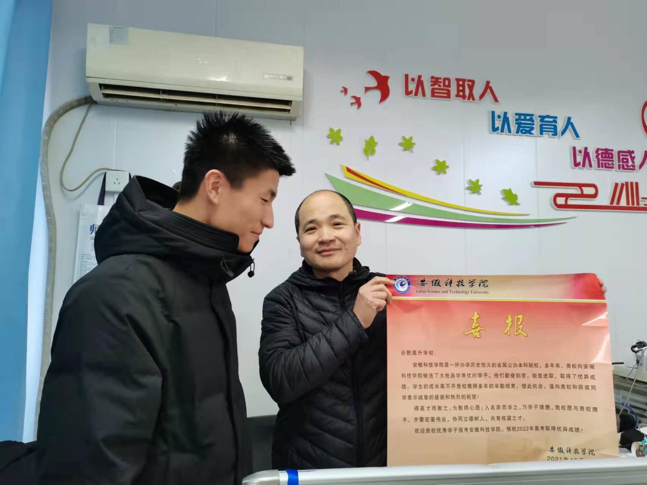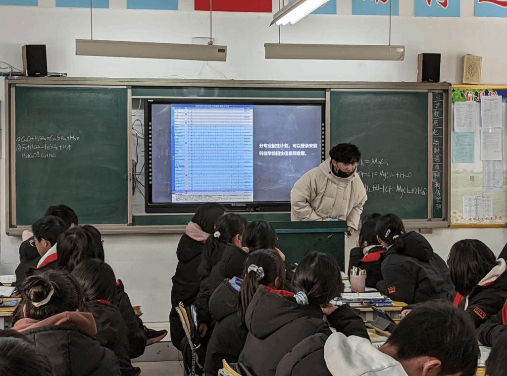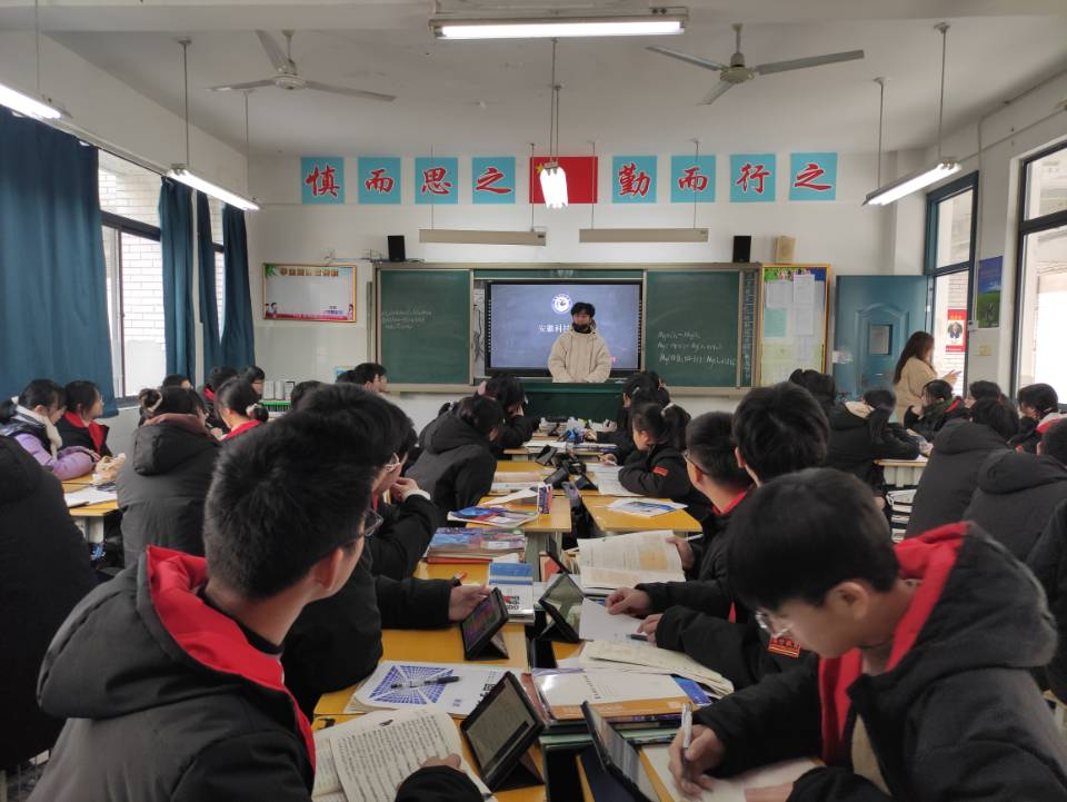 刘志伟团队首先拜访了语文老师王雪莲和英语老师宋梦琼,并与老师进行了交谈。交谈过程中,共同回忆了高中生活的点点滴滴。他向老师汇报了这几个月在大学生活和学习上的变化与成长,向老师展示了在学院参加活动时的照片等。并向老师详细介绍了半岛app官方在线入口的相关情况如学校条件、校园风景、师资水平、考研录取率等。合肥高升学校的年级主任、数学老师宋仔义,他听说团队此行的目的之后,热情地安排了刘志伟团队与高三学子进行互动交流。