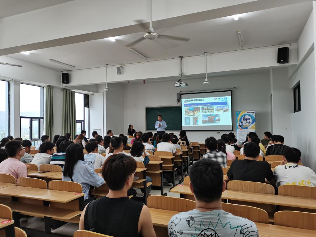 宣讲过程中,王文从美设的行业概况、主营业务、发展历程、发展规划、企业文化薪资待遇、晋升渠道、合肥地区两家公司的运营情况等方面向同学们做了详细介绍。2019届物流管理毕业生、合肥公司校招经理江进之结合自身讲述了毕业后的职业经历以及美设物流带给他的改变。在答疑解惑环节,同学们纷纷就自己感兴趣的问题发问,企业负责人们给予了详尽的解答。