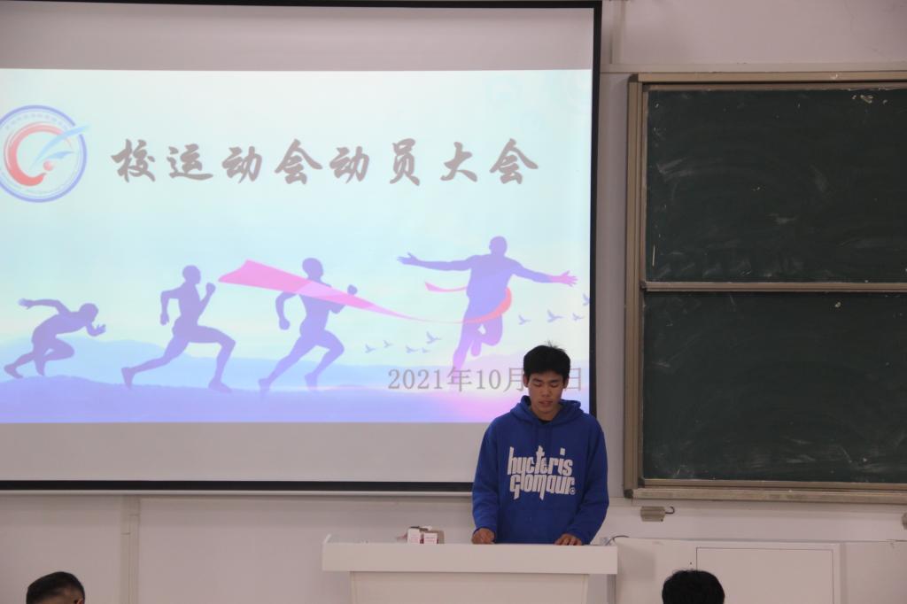 动员会上,江旭聪传达了体育教学部相关文件精神,就赛事具体工作进行了布置,物流管理202班梁兆亮同学代表参赛运动员作了发言。