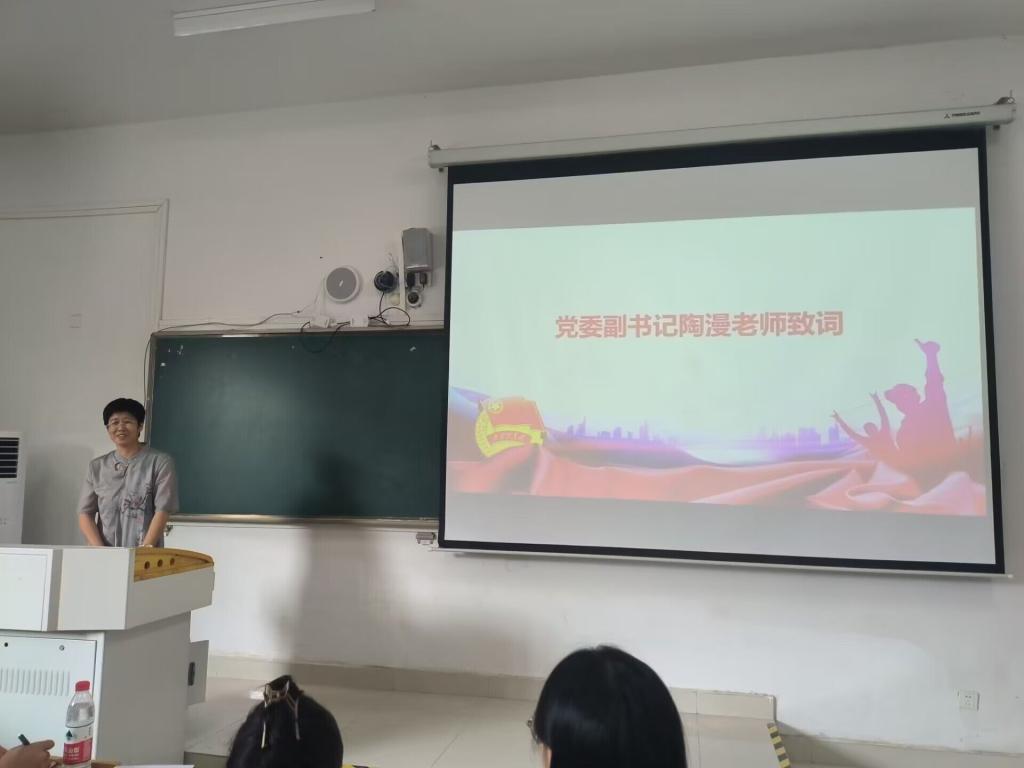 陶漫在讲话中代表学院党委对各位学生会干部为学院的改革、发展、稳定中做出的贡献表示感谢,对新调整配备的学生会干部和受到表彰的同学表示祝贺。陶漫指出,学生干部是学生中的骨干分子和中坚力量,学生干部队伍的素质和工作能力是做好团学工作的关键所在,直接关系到学院、学校整个育人目标的实现。她对各位学生干部提出几点希望和要求:一是要坚定理想信念、提高政治站位,团结和凝聚广大青年学生坚定不移听党话、跟党走。在思想上增自觉,理论上多清醒,行动上要坚定,实践上多砥砺;二是要立足成长成才、积极投身实践,在实践锻炼中练就过硬本领。坚持知行合一,注重在实践中学真知、悟真谛,加强磨练、增长本领;三是要锤炼品德修为、锻造优良作风,发挥好模范带头作用。不断强化学生干部的群众意识、责任意识、奉献意识,传递好思想,传播正能量;四是要牢固树立服务意识,扎根于青年学生中间,做好青年学生的知心人、引路人,同时,要发挥好桥梁和纽带作用,更加积极吸引和凝聚更多青年学生参与到党、团组织的活动中来。希望大家在学院党委的领导下和团委的具体指导下更好地服务广大同学,为学校更名大学不断贡献力量。