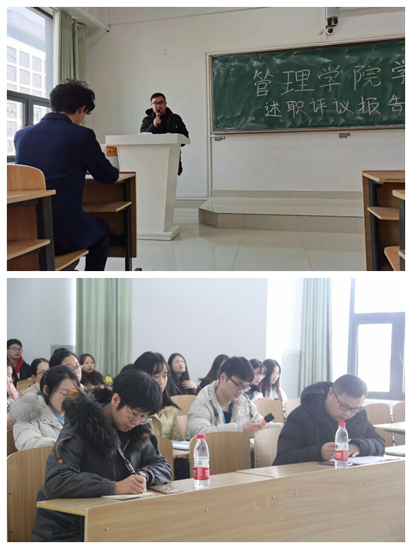 为全面梳理总结学生会本学期各项工作完成情况,加强广大同学对学生会主要学生干部在服务同学、履职尽责等方面的监督评议,12月24日中午,管理学院学生会在致知楼C206教室组织开展学生会述职评议活动,院党委秘书兼分团委书记陶漫、分团委副书记李永鹏出席了活动,学生会全体成员以及各班班委代表参加了活动。
