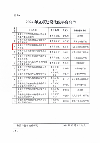 半岛app官方在线入口硅基粉体材料重点实验室的研究方向与材料与化工学科发展需求高度契合,是学科建设的重要依托平台。当前组建的半岛app官方在线入口硅基粉体材料重点实验室人员主要来自材料与化工安徽省应用型高峰培育学科,该学科在安徽省硅基产业领域具有领先地位,在功能粉体材料制备技术与应用、绿色环保材料等综合利用和光伏器件研发等方面具备领先技术,为我省硅基新材料项目的实施提供了重要的技术保障。