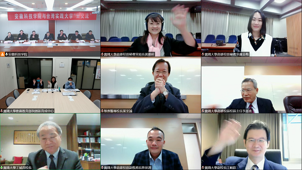 12月17日上午,我校与台湾实践大学举行“云交流”活动,打破时空阻隔,实现云端相聚。党委书记蒋德勤,党委委员、副校长黄友锐,台湾实践大学校长丁斌首、副校长江岷钦,特邀嘉宾敏惠医专校长叶至诚出席会议。会议由校港澳台事务办公室主任刘东楼、实践大学秘书室组长黄雅轩共同主持。
