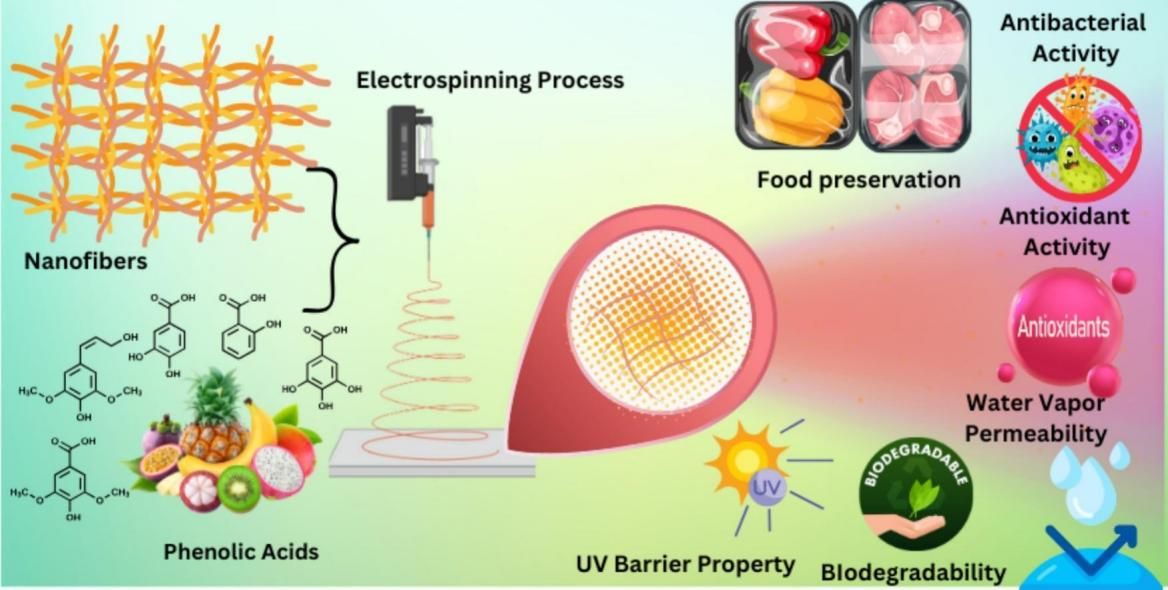 日益增长的可持续食品包装需求,推动了生物活性酚酸结合的电纺丝纳米纤维的创新。该论文重点阐述了酚酸——如单宁酸、没食子酸和茶多酚等在提升电纺纳米纤维生物降解聚合物功能性的关键作用。这些化合物通过氢键与共价相互作用,增强了材料的机械强度、热稳定性和阻隔性能,同时其抗氧化与抗菌活性能够有效抑制食品氧化变质和微生物污染,文献研究证实了其在易腐食品(包括肉类、水果和海鲜)中延长货架期的有效性。此外,通过同轴或多层结构等先进电纺技术实现的控制释放机制,确保了生物活性的持续发挥。该综述也探讨了优化释放动力学与规模化生产所面临的挑战。酚酸功能化纳米纤维将材料创新与实际食品保鲜需求相结合,为食品新一代活性包装设计提供了一种多功能且环境友好的解决方案。该论文得到了安徽省高校优秀科研创新团队(2024AH010007)和半岛app官方在线入口科技创新团队项目(2023KJCXTD003)的资助。