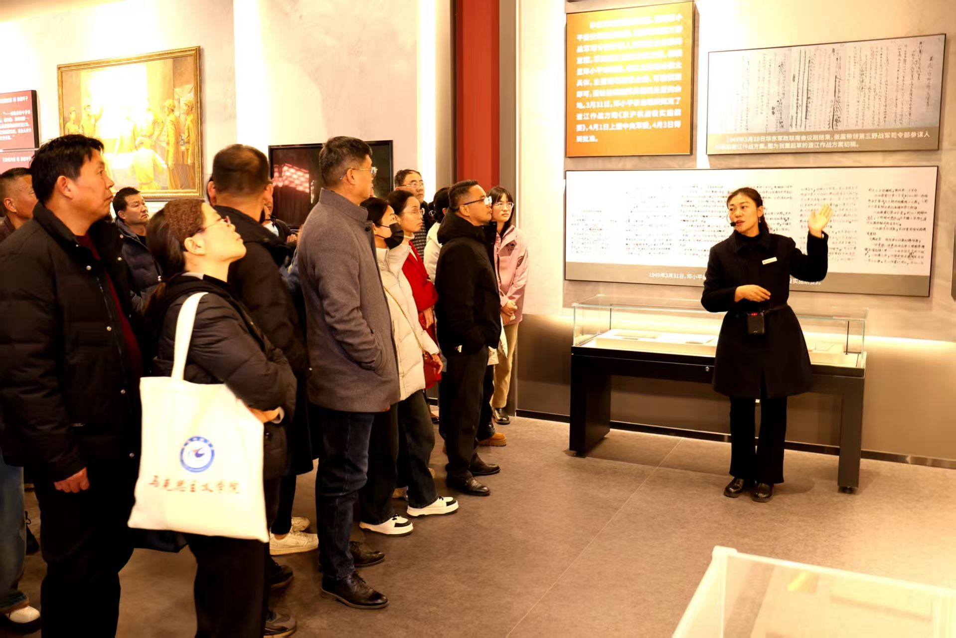 理论学习同时,学院精心设计红色实践研学路线,组织参训教师赴蚌埠市禾泉小镇党史学习馆与渡江战役总前委孙家圩子旧址开展现场教学。通过实物、影像等沉浸式体验,重温党的百年奋斗历程,珍贵史料与历史讲解让教师们深刻感悟革命先辈的坚定信念与牺牲精神。此次实践研修不仅是一次深刻的精神洗礼,更让教师们积累了丰富的本土红色教学资源,激发了将红色基因融入思政课堂的创新灵感。
