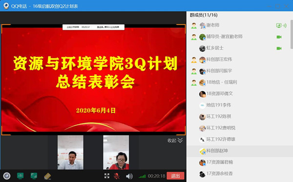谢越介绍了2016级3Q计划实施情况,并通过视频向各位同学们展示了3Q计划取得的成果。杨小晗宣读《半岛app官方在线入口资源与环境学院关于3Q计划的表彰决定》及双创计划获奖名单。获奖代表赵壮壮发言,表示同学们的成功永远都离不开老师的辛勤付出与指导。