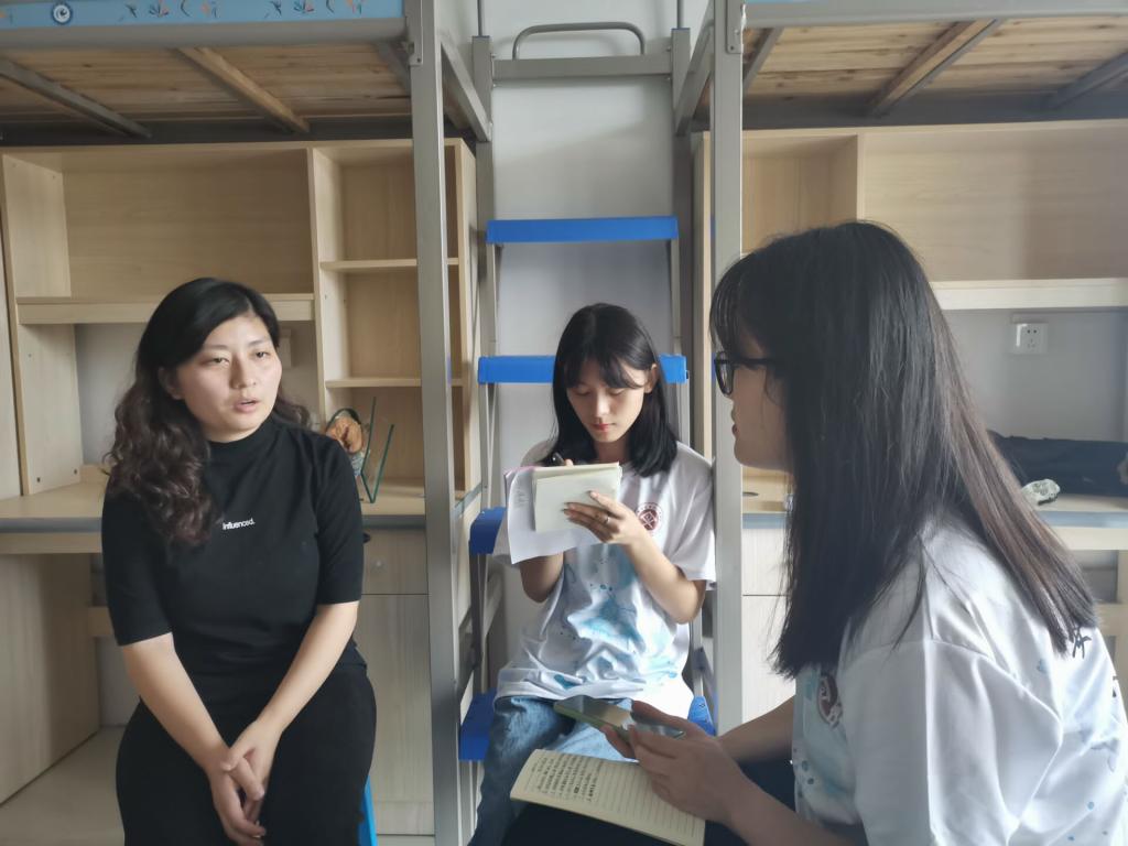 受疫情的影响,学校不允许家长进校,身形瘦小的宋志瑶在还没到校之前,一直处在慌张迷茫的状态下,“那么多行李该怎么搬到寝室?”入校以后这个问题迎刃而解。“我本来还挺担心该怎么办的,但是一到学校,学长学姐们就帮我拿行李,还帮忙搬到六楼,真的是太热心了!”