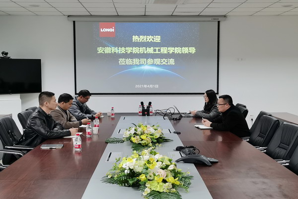 张程一行在参观滁州隆基乐叶光伏科技有限公司展厅后,对该公司发展历程、产品更新路线、工厂全国分布、生产车间环境、员工生活区域等有了全面了解;随后,双方就校企合作安排实习、学生入职后的职业发展等方面,进行了交流并达成共识。