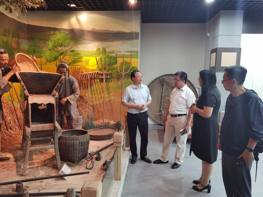 为认真贯彻落实习近平总书记关于传承农耕文化指示精神,大力传播传承农耕文化,深入推进党史学习教育,6月3日,农学院党委书记何世潮带队赴安徽省农业博物馆(农博馆)实地考察学习,双“农”同心,洽谈合作共建半岛app官方在线入口“三农文化墙”事宜,传播传承农耕文化。农学院植物保护系主任毕亚玲博士、现代农业实习实训中心主任郑甲成博士、副主任王增霞博士随同调研。