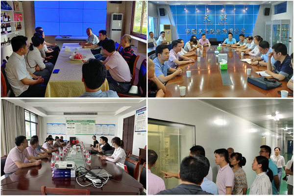 24日上午,詹学文一行在天长市科技局副局长葛天宇陪同下,分别参观走访了天长市圣丰生态农业科技有限公司、安徽天洋药业有限公司、安徽峆一药业股份有限公司等三家企业。在企业,詹学文一行与企业负责人进行了座谈交流,观看了企业宣传片,了解公司发展历程、主要产品、研发业务和发展方向等。参会专业老师与企业人员就产品研发、技术支持、科研服务、合作形式等内容进行深入探讨交流,并达成初步合作意向。詹学文一行还参观了企业生产车间,交流了学生就业实习等事宜。