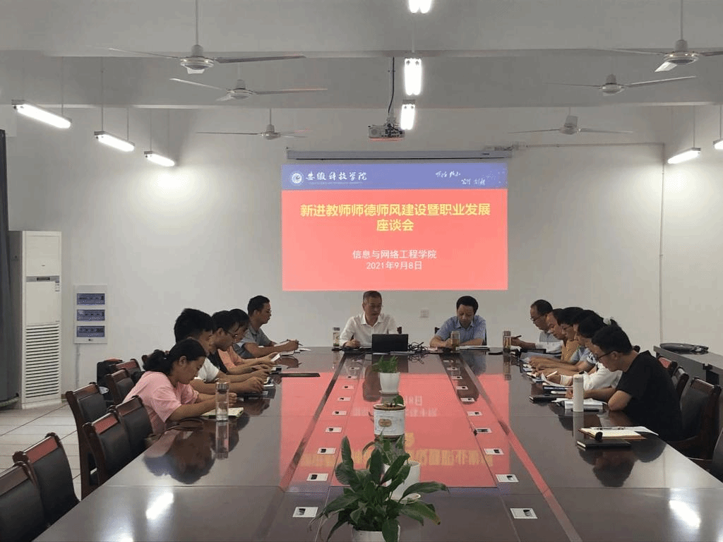 为进一步加强青年教师队伍建设,深入了解新进教师入职以来遇到的问题和困惑,9月8日下午,在第37个教师节来临之际,信息与网络工程学院在尚行楼B418会议室召开新进教师师德师风建设暨职业发展座谈会,学院党委书记王振其、院长余宏杰、副院长何恩节、副院长曹浩及全体新进青年教师参加了会议,会议由王振其主持。