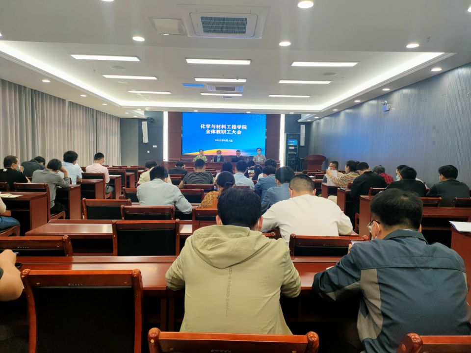 5月4日下午,化学与材料工程学院在西辅楼111会议室召开全体教职工大会,会议采取线上线下相结合的方式举行。学院党委书记黄树桥、院长宋常春、副院长李子荣、唐婧及全体教职工参加会议。会议由黄树桥主持。
