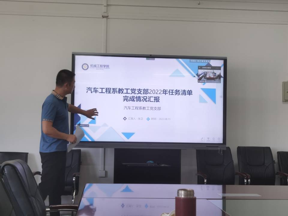 会上,机电控制工程系、机械设计制造工程系、汽车工程系3个教工党支部书记,依次对照本支部2022年工作任务清单,从党支部标准化规范化建设、“双创”项目与“三型”党支部建设、人才队伍建设、基层教学组织建设、专业建设、课程建设、教学团队与教学研究、科研团队与科学研究、研究生教育、科研到账经费,学科与平台建设、学科竞赛活动、实验室建设以及特色项目创建等13个方面,逐条汇报2022年既定工作任务清单完成情况,总结工作成效,梳理存在问题和差距,坚持刀刃向内分析原因,提出下一步推进工作思路和具体整改设想。