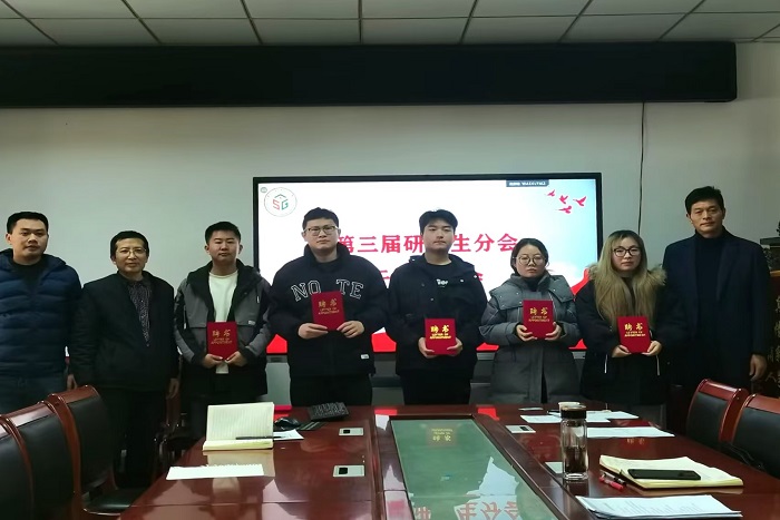 会上,桑宏庆对研究生分会干部的服务意识、工作方法提出了几点要求。彭钢对研究生分会干部的学业规划、科研能力做了几点提醒。在沟通交流环节,分会各部门成员纷纷发表意见,就学术科研、文体活动、心理健康、校园生活等方面交流工作中的经验与困惑。会议最后,付光玺、桑宏庆、彭钢为第三届研究生分会干部同学颁发了聘书。