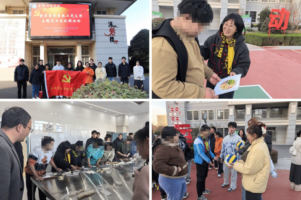 为充分发挥高校基层党支部作用,践行教育帮扶与社会服务使命,12月3日下午,食品科学与工程学院食品营养系教工党支部联合滁州市特殊教育中专学校党支部,共同开展“丰富专业实践,拓宽就业渠道,关爱特殊群体,践行初心使命——烹饪营养知识进校园”主题党日活动。食品营养系党支部书记杨剑婷,教工党员李丹阳、刘颜,烹饪与营养教育专业学生党员代表及志愿者,滁州市特殊教育学校党支部书记、校长李峰,副校长陆军,中专部相关负责人及师生代表参加活动。