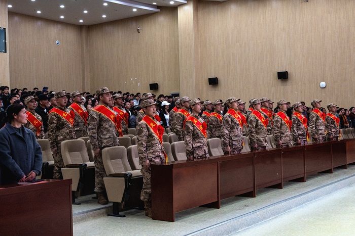 会上,张少辉介绍了应征入伍政策,保卫处副处长邵传雷宣读了2026年春季应征入伍定兵名单,财经学院于忠义同学作为入伍学生代表发言。