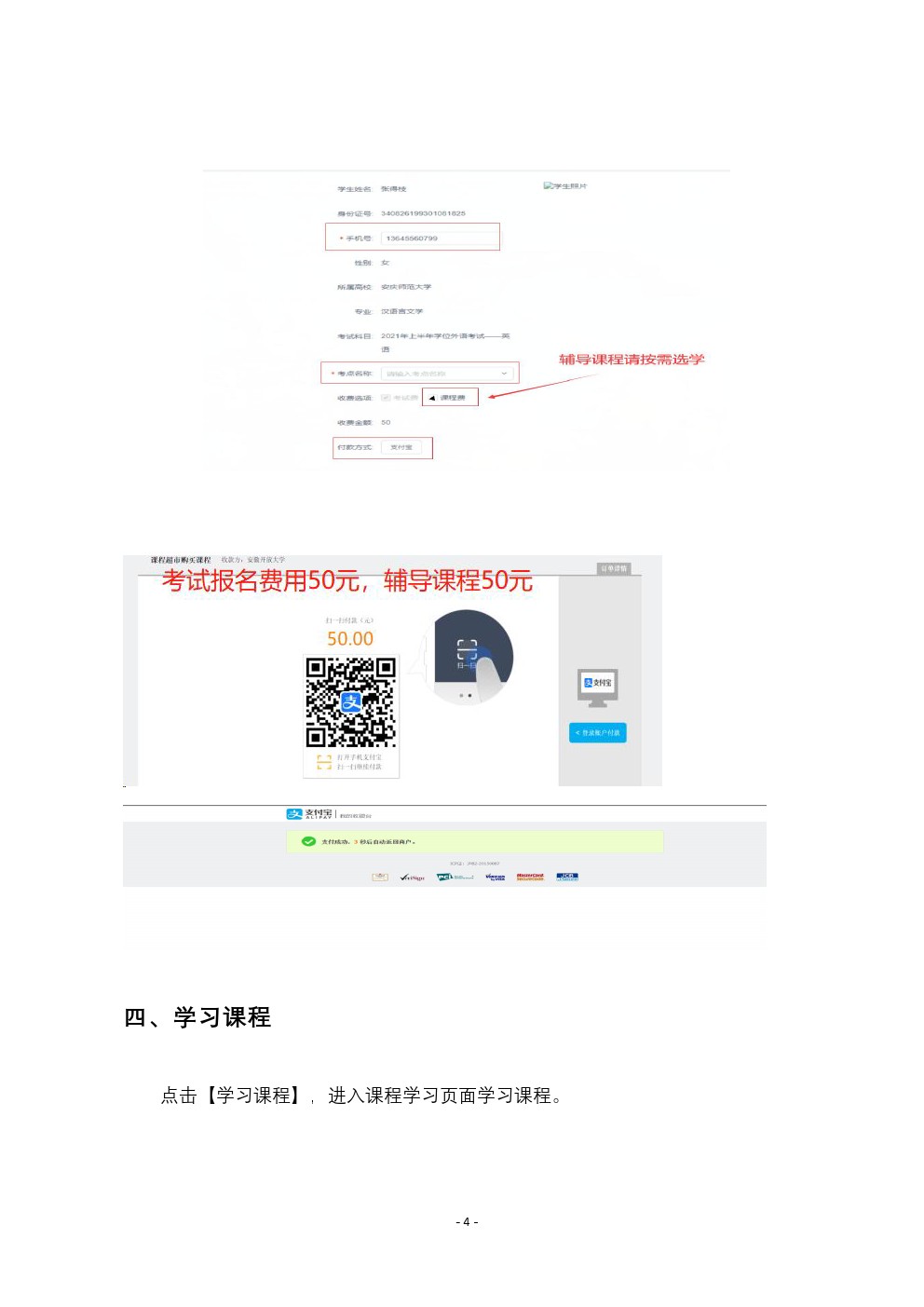 考生报名费一律通过安徽继续教育在线平台缴费(详见附件操作指南),我院学生限选英语课程考试。联盟及我校从未委托、授权任何单位、任何机构提供报名、辅导服务,请勿听信“包通过”“提供替考”“提供试题或答案”等虚假宣传,切勿上当受骗。