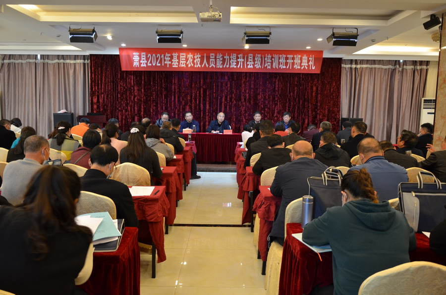 受萧县农业农村局委托,我院举办了萧县基层农技人员能力提升培训班。11月20日下午两点,在明都君悦6楼多动能厅举行了该班的开班典礼,我院院长杨维来、副院长张文国,萧县农业农村局局长欧林杰、农技推广中心主任徐为领、畜牧中心主任许铁及该班的全体学员等出席了开班典礼,典礼由张文国主持。