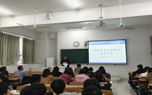 10月12日下午,建筑学院在致知楼C109教室召开风景园林认知实习动员大会,建筑学院党委副书记谢宜勤、辅导员武辉、课程指导老师李若愚、魏灵敏及2022级风景园林专业全体学生参加了本次动员大会。会议由风景园林教研室主任肖晴主持。