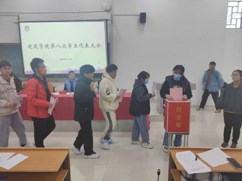 大会在庄严的国歌声中拉开序幕。首先由建筑学院第七届学生会执行主席孙玉慧做工作报告。报告阐述了学生会各部门职责,回顾了院学生组织过去一年里的各项工作情况,并且指出了学生组织当前面临的新形势新挑战,同时也祝愿新一届学生组织工作越来越好。随后,大会表决通过了《建筑学院第八届学生委员会委员选举办法(草案)》和《建筑学院第八次学生代表大会总监票人、监票人建议名单(草案)》,选举产生了出席半岛app官方在线入口第十五次学生代表大会正式代表、建筑学院第八届学生会主席团成员、建筑学院第八届学生委员会委员。
