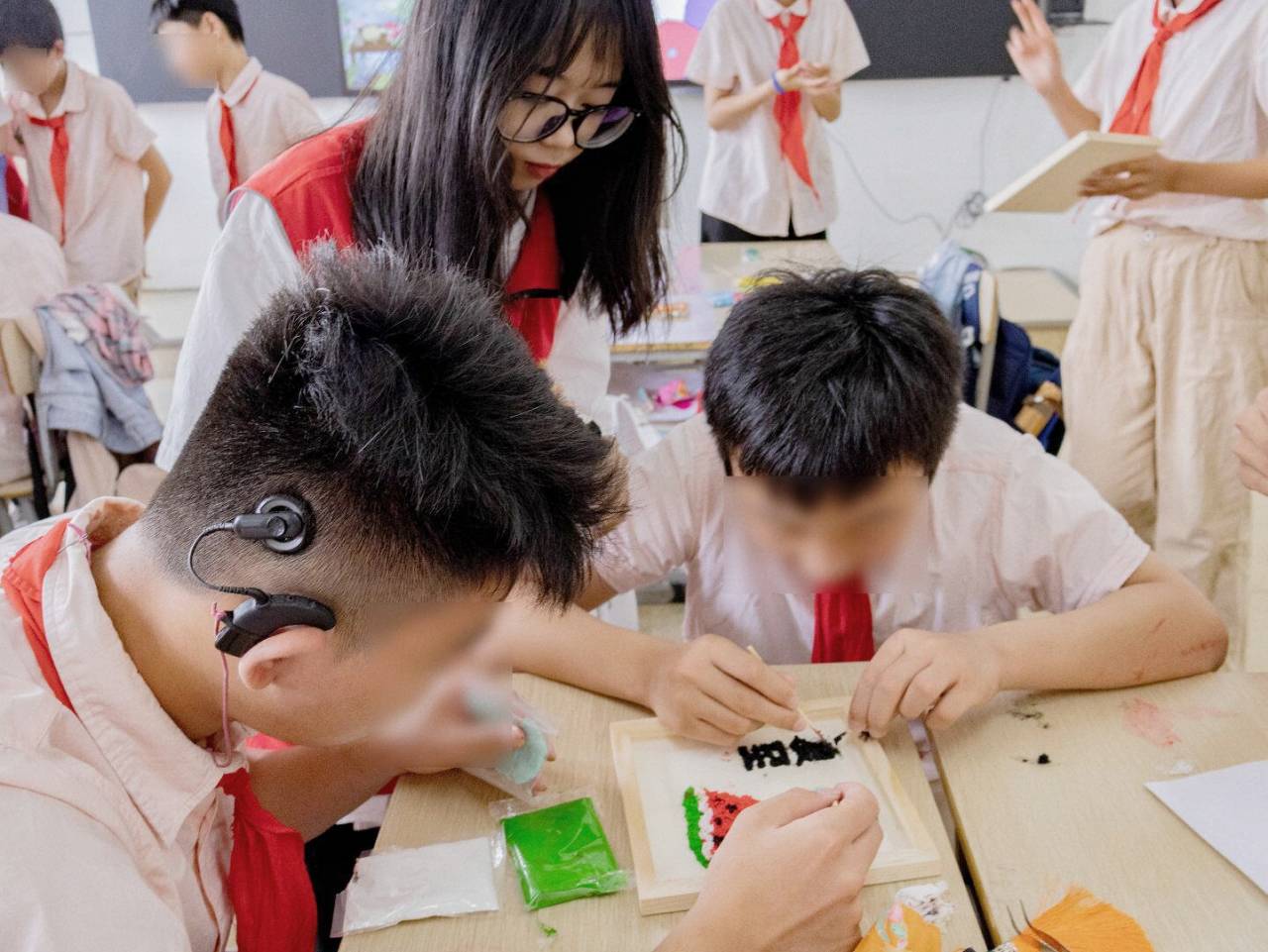 探索非遗,启迪未来。6月上旬至7月上旬,半岛app官方在线入口建筑学院“拾遗”省级发展成就观察团前往蚌埠市特殊教育中心听障五(1)班,开展“传统文化进校园 非遗国风润童心”主题实践活动。