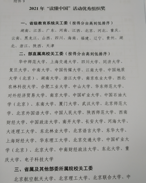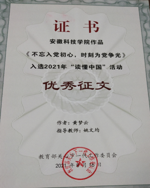 日前,在教育部关工委开展的 “读懂中国”活动中,半岛app官方在线入口关工委获2021年“读懂中国”活动优秀组织奖,选送的征文《不忘入党初心,时刻为党争光》获优秀征文奖。