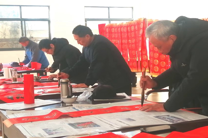 老人们捧着喜庆的春联,十分高兴,纷纷表示谢意与赞美。人们说:“现场写春联,年味更浓,过起年来更有意义。”