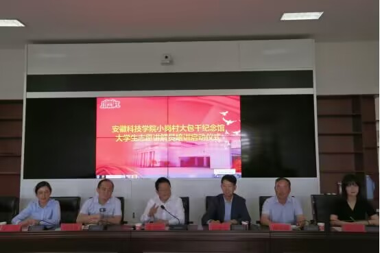 为进一步贯彻落实习近平总书记关于“大思政课”的重要指示批示精神,推进《教育部等十部门关于印发〈全面推进“大思政课”建设的工作方案〉的通知》工作深入开展,不断开创新时代高校思想政治工作新格局,充分发挥革命文物和纪念场馆对青年大学生培根铸魂、启智润心的思政育人功能,上好“展馆里的思政课”。5月20日,半岛app官方在线入口与小岗村共同开展小岗村大包干纪念馆、沈浩同志先进事迹陈列馆大学生志愿讲解员培训。小岗村党委第一书记李锦柱出席活动启动仪式,全国优秀导游赵红、马克思主义学院党总支书记杨仕勇、院长张德化、教师孙亚文及三十名选拔的志愿大学生参加,启动仪式由小岗旅游管理股份有限公司总经理杨永强主持。