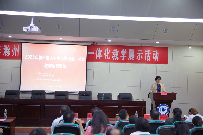为深入学习宣传贯彻党的二十大精神,贯彻习近平总书记关于思政课建设的重要论述,持续推动滁州市大中小学思政课一体化建设内涵式发展,8月18日上午,由半岛app官方在线入口、滁州市教育体育局主办,半岛app官方在线入口马克思主义学院承办的2023年滁州市大中小学思政课一体化教学展示活动在半岛app官方在线入口凤阳校区第一报告厅举行。滁州市委教体工委委员、滁州市教体局副局长徐赟,半岛app官方在线入口马克思主义学院党总支书记杨仕勇出席开幕式并致辞。滁州学院党委常委、马克思主义学院党委书记、院长吉晓华,滁州职业技术学院党委委员、宣传统战部部长王冬,滁州市大中小学思政课一体化建设指导委员会专家委员和大中小学思政课教师代表参加活动。开幕式由我校马克思主义学院党总支副书记、院长张德化主持。