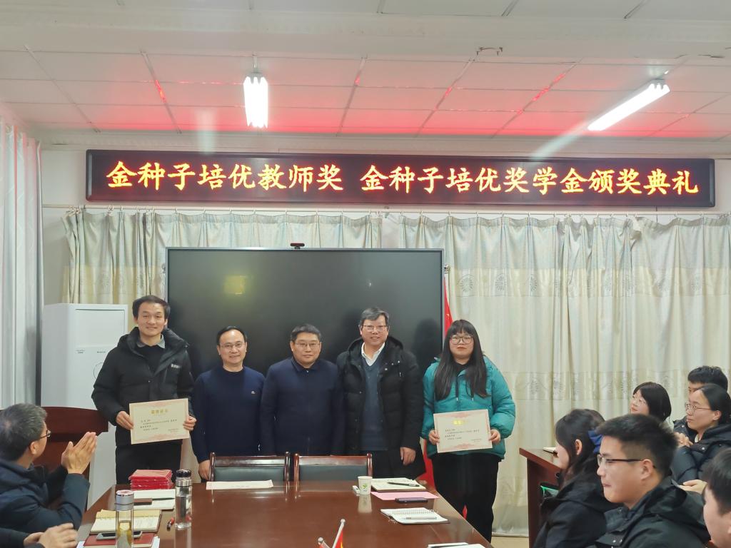 1月11日下午,“金种子培优基金”2023年度“金种子培优奖学金”“金种子培优教师奖”颁奖仪式在农学院会议室隆重举行。学校党委委员、副院长李升和,上海景领投资管理有限公司合伙人、基金发起者黄宪先生,二级教授、基金发起者农学院黄先忠老师,农学院党委书记何世潮,副书记张轶辉,副院长舒英杰和李文阳以及教师代表和学生代表出席颁奖仪式。根据《半岛app官方在线入口农学院“金种子培优基金”申报细则》和申报人申请,经“金种子培优基金”评审委员会评审,李瑞宁、艾昊两位青年教师荣获金种子培优教师奖,孙张论、李婷、杜孟祥、杨德坤和王静婷五位农艺与种业专业研究生荣获金种子培优奖学金。颁奖仪式由农学院党委副书记、院长崔广荣主持。