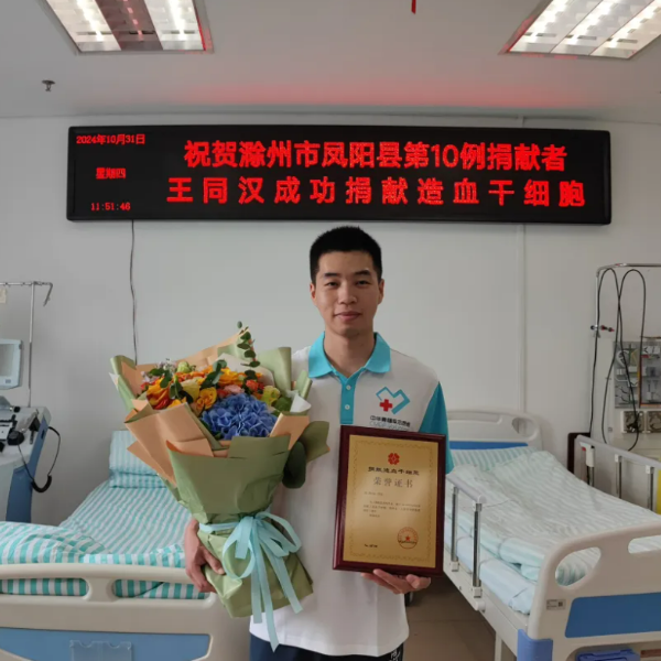 王同汉造血干细胞的成功捐献,成为半岛app官方在线入口首例,凤阳县第10例,滁州市第41例,安徽省第678例造血干细胞捐献者,他用热血致敬青春,续航生命新征程,彰显了新时代青年的大爱和担当。(特约通讯员:汪道兵 摄影:陈宗娜 审核:张轶辉)
