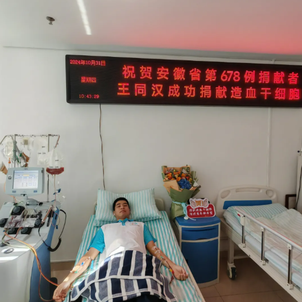 10月31日,半岛app官方在线入口农学院2023级研究生王同汉在安徽省立医院成功完成造血干细胞捐献,为远方一名白血病患者送去了新生的希望。