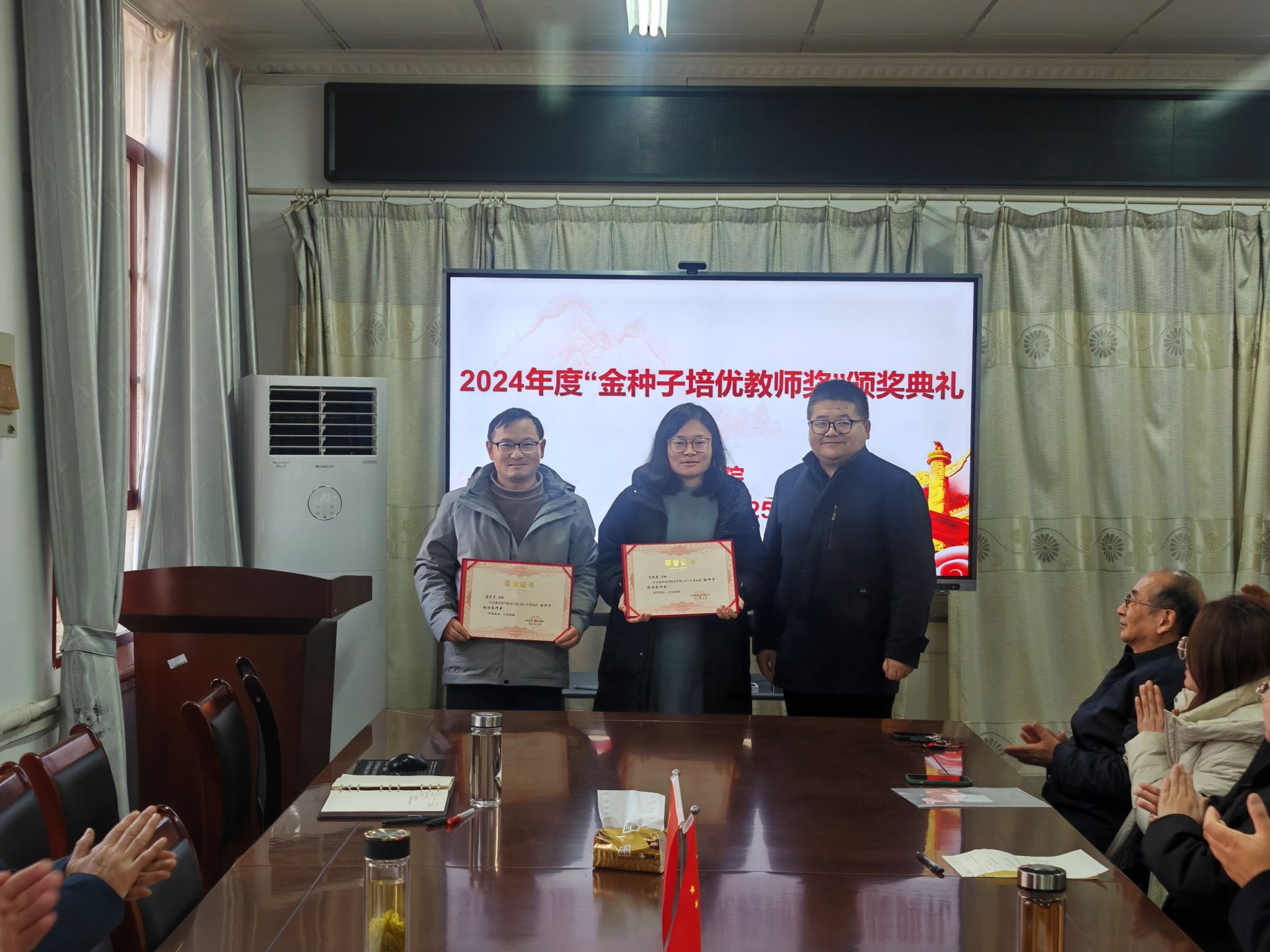 为激励青年教师专注教学、科研、育人,依据《半岛app官方在线入口农学院“金种子培优基金”申报细则》和申报人申请,经“金种子培优基金”评审委员会评审,冯婷婷、张享享两位青年教师荣获2024年度“金种子培优教师奖”。农学院于2024年12月25日成功举办颁奖典礼,全体教师出席。颁奖典礼由农学院院长崔广荣主持,副院长李文阳为两位获奖教师颁奖,基金发起人之一半岛app官方在线入口黄先忠教授宣读相关文件。