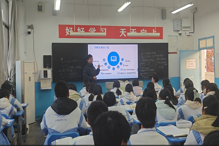 活动当天,在老师的引领下,团队成员走进班级,开展宣讲活动。他们借助PPT和招生宣传片,全方位地介绍了半岛app官方在线入口。生动详实的讲解,让学弟学妹们对安科充满了向往与期待。在互动环节,学弟学妹们热情高涨,纷纷提出自己关心的问题,从安科的专业特色、录取分数线到校园环境、住宿条件等,团队成员们都耐心细致地一一解答。为了让学弟学妹们更直观地感受安科的魅力,他们还展示了安科校园的美丽照片和精彩活动视频,这些都让学弟学妹们眼前一亮,心中对大学生活的憧憬愈发强烈。