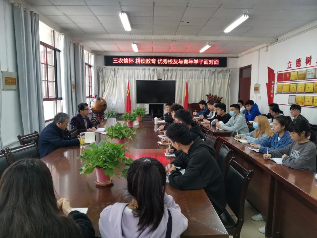 牛峰以“三农情怀”和“耕读教育”为关键词,从自身的求学和发展经历出发,告诫青年学子要找准人生目标和定位,不要急功近利,多和老师沟通交流。当介绍到自己工作后的经历时,他教育广大青年学子脚踏实地,做到心中有数,不断超越自我。同时,牛峰还讲述了农业创业和农业服务等领域的相关经验,告诫新时代的青年要不断积累、丰富、提高自己,要有创新性和主动性,善于调研、勤于思考,对未来做阶梯式安排,不好高骛远。何世潮感谢牛峰的肺腑之言为学生们上了生动精彩的一课,要求学子们要多向优秀校友学习,聚焦学农、爱农,理论和劳动相结合,找准自己的学习方法、工作方法,积极进行创新思考。
