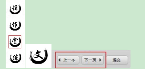 6.诗词赏析:点击界面左侧“赏”按钮。学习结束点击界面左侧“文”按钮或“上一页”返回原文。点击“下一页”继续学习下一首诗词。
