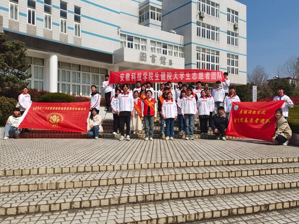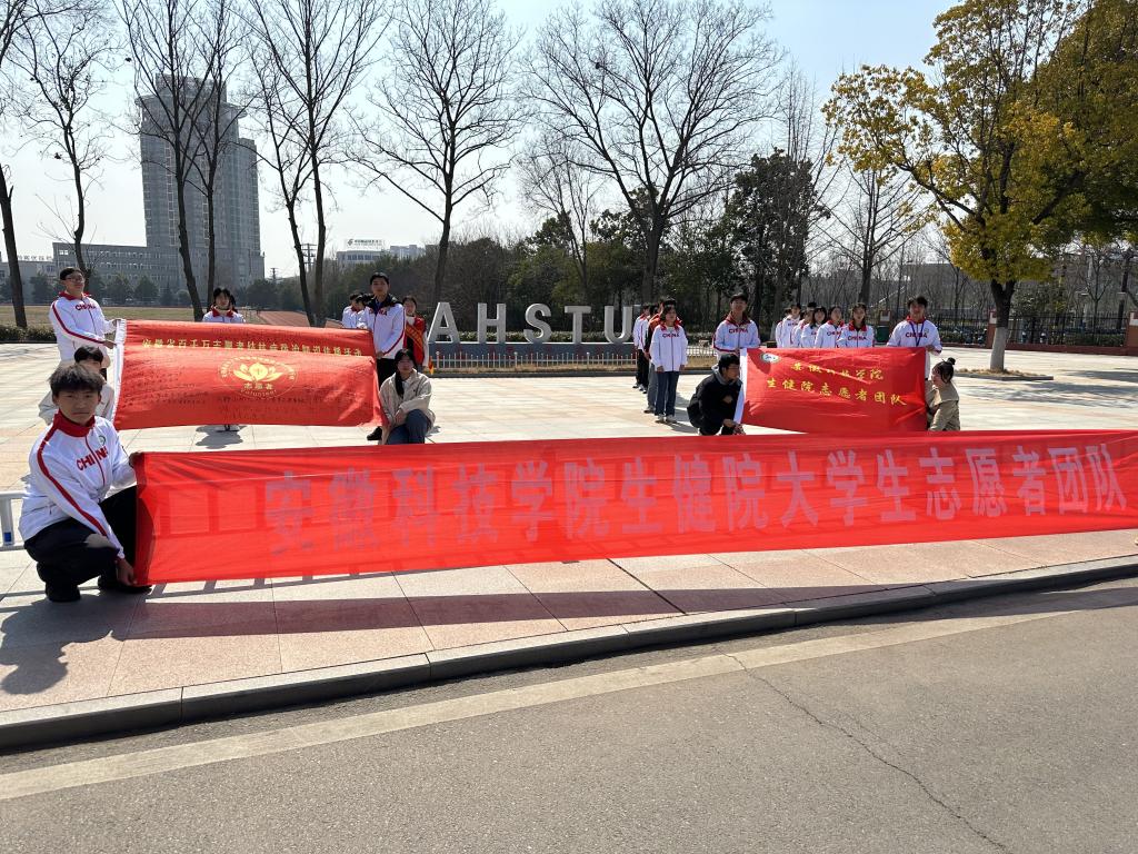 为做好2023年世界防治结核病日系列宣传活动,推动安徽省百千万志愿者建设,加强志愿者团体间的交流和互动,提升志愿者的荣誉感和归属感,安徽省举办百千万志愿者旗帜传递主题活动。3月2日,生命与健康科学学院大学生志愿者团体完成安徽省百千万志愿者旗帜传递活动。凤阳县疾控中心结防科科长侍向玉,科员刘新雨,生命与健康科学学院团委副书记姜毅,专职辅导员沈靓带领学院志愿者参加此次活动。
