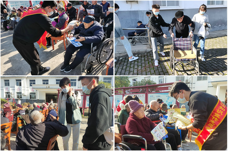 活动期间,学生志愿者们面带灿烂的笑容,满怀真挚的问候前去看望老人,帮助老人整理房间、打扫院落,并给老人们带去了相声、吉他弹唱、舞蹈等精彩节目。表演结束后,学生们与老人手牵手漫步、心贴心交流,细致地了解老人们在敬老院的生活状况和身体状况,提醒他们要注意节气变化,适时添加衣物,保重身体,健康长寿。同时,为有效保护老年人身体健康,学生志愿者们通过悬挂横幅、宣讲资料等的方式向老人们宣传结核病防治知识。同学们与老人面对面、一对一交谈,耐心且细致地讲解了结核病的基本概念、常见症状及防治知识,并介绍了预防结核病的简单方法和发现结核病的应急处理。活动最后,老人们与学生志愿者合影留念,感谢他们带来的欢乐时光。来自中药学专业203班的郭院婷在活动结束后发表了自己的感想:“与这群慈祥和蔼的老人们交谈,我感受到了如家人般的温暖很亲切。希望他们都健康长寿,阖家幸福,也祝天下所有的老人身体康健,平安幸福。”