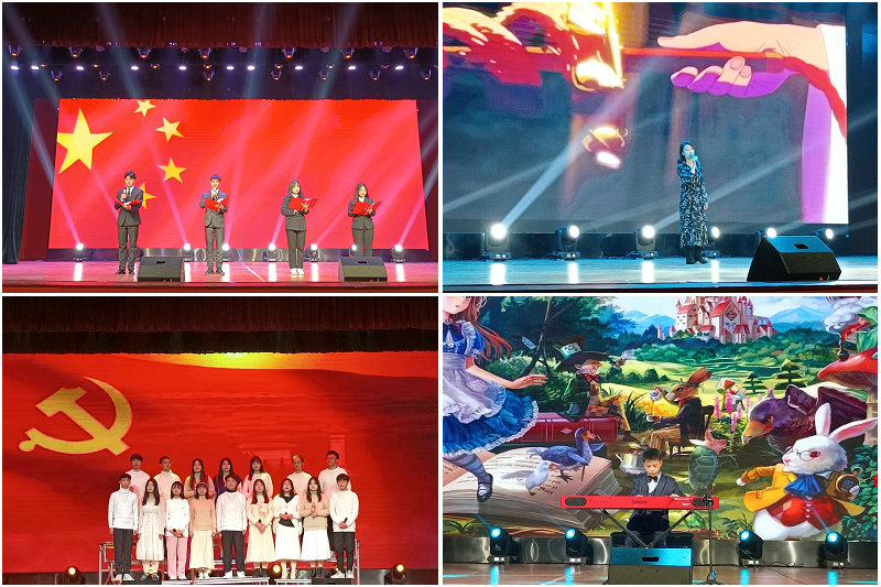 第二篇章中,《我是中国人》的朗诵体现党的百年征程波澜壮阔,党的百年初心历久弥坚,尽显中国人的骄傲与自豪;《心底的中国》的联唱,传递着安科学子的拳拳爱国心;《献给爱丽丝》的电子琴独奏空灵婉转,令人赞不绝口。