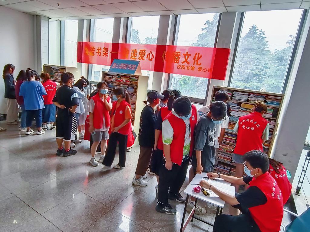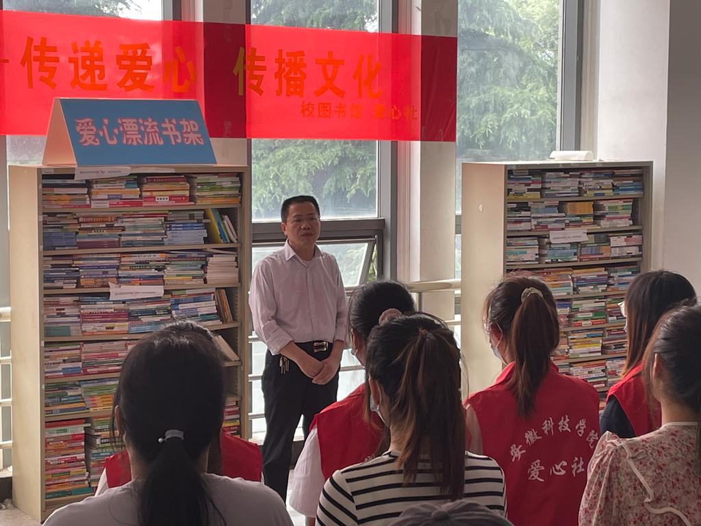 5月18日下午,图书馆联合校爱心社在凤阳校区图书馆A2楼平台共同开展了以“传递爱心,传播文化”为主旨的“2022年爱心漂流书架”活动启动仪式。