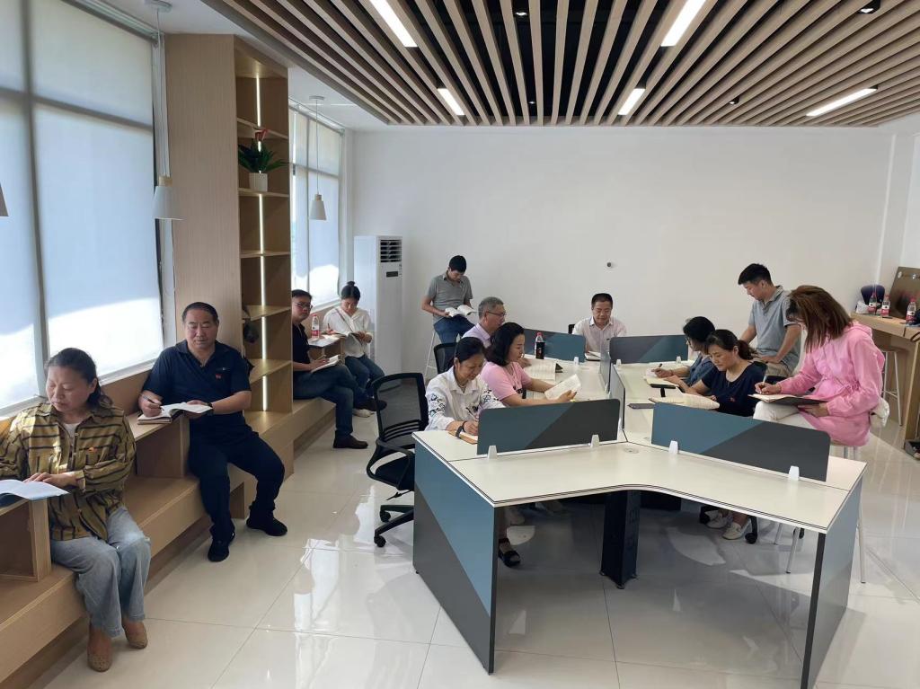 在我校参与共建的小岗村耕读书屋中,支部书记汪徐春带领大家仔细整理架上图书,接着领学了《习近平新时代中国特色社会主义思想学习纲要》第六部分内容:全面深化改革开放——关于新时代坚持和发展中国特色社会主义的根本动力,结合回顾了当年小岗村18位“大包干”带头人贴着身家性命按手印的历史事件,重温了“敢闯敢试、敢为人先”的小岗精神,强调大家要在各自岗位上弘扬小岗精神,为图书馆事业发展、为学校顺利更名大学添砖加瓦。