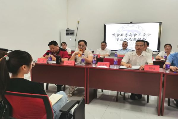 为配合学校食堂饮食服务与食品安全工作,解决同学们在食堂遇到的大大小小的问题。伙食民主管理委员会于2021年6月26日在大学生活动中心多功能厅召开“饮食服务与食品安全”学生代表座谈会。后勤保障部主任胡明,党委学工部副部长、学生处副处长陈君君,校团委张古品老师,饮食服务监管中心负责人及凤阳校区伙管会主任张洁茹,龙湖校区伙管会张翰、朱嘉童参加会议。在校服务的七家餐饮企业项目负责人及各二级学院学生代表参加了会议。