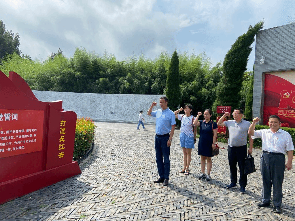 在纪念馆前,党支部书记黄立义带领全体党员庄严地举起右拳,面对鲜红的党旗,重温入党誓词。“我志愿加入中国共产党,拥护党的纲领,遵守党的章程……”一声声铿锵有力的誓言久久回荡。