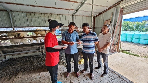 师生一行12人在各乡镇畜牧站长的带领下,历时五天,先后前往临泉县城关、宋集、长官、滑集、老集、韦寨、艾亭等乡镇的20个牛羊养殖场开展实地调研。对养殖场的布局、饲喂饲料组成及用量、消毒防疫等方面进行记录评估,从牛羊疫病防治、饲料加工与配制、牛羊饲养管理等方面与养殖人员进行交流,询问面临的技术难题,从专业角度对养殖场存在的问题进行现场指导,对养殖户提出的疑问进行解答。