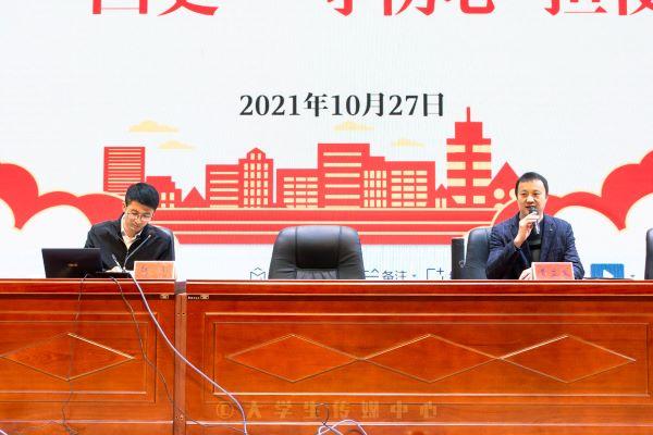 10月27日下午,蚌埠团市委书记韩见应邀在龙湖校区为我校2021年“青马工程”大学生骨干培训班暨第七期团校做专题报告,报告由校团委书记、党委宣传(统战)部副部长黄立义主持。