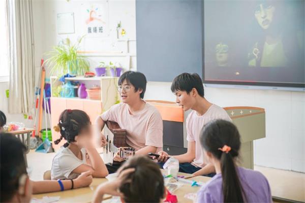 当《孤勇者》的前奏响起,团队成员花凯旋和李席旺的激情弹唱带动了全场。“人只有不完美值得歌颂”“谁说站在光里的才算英雄”一句一句的歌词,鼓舞着教室里的每一位听众。孩子们欢呼雀跃、手舞足蹈。