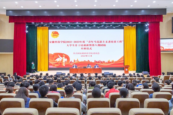 为深入学习宣传贯彻党的二十大精神,引导广大青年学生在学思践悟中坚定理想信念、在奋发有为中践行初心使命。11月2日,我校2022—2023年度“青年马克思主义者培养工程”大学生骨干培训班暨第八期团校开班式在龙湖校区东辅楼报告厅举行。党委学工部副部长、校团委书记张聪,校团委副书记李刚、王乐出席开班式,校院两级团学骨干三百余人参加。开班式由李刚主持。